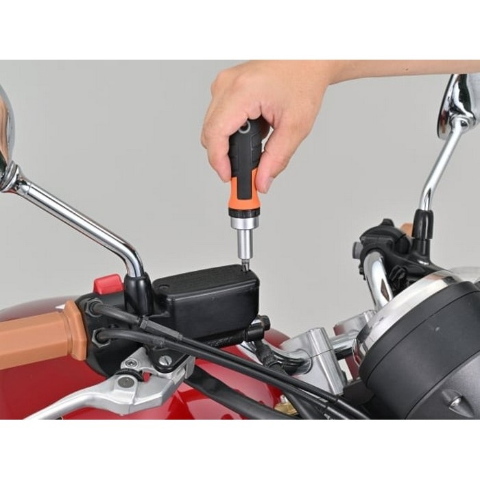 狭いスペースでも操作しやすい1/4インチビット用のラチェットドライバーと、4サイズの六角ソケット、36種類のビットなどを組み合わせた高機能ツールセット。多彩な作業がこれ一つで可能です。