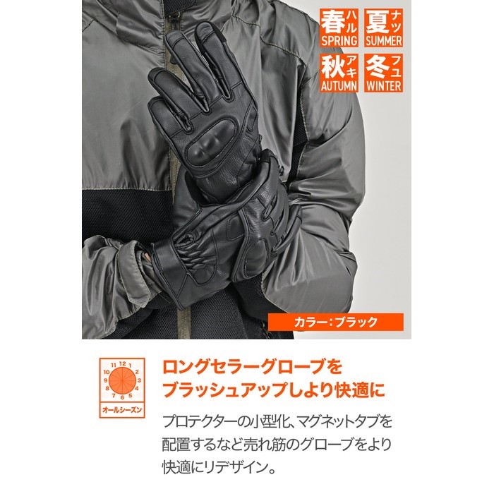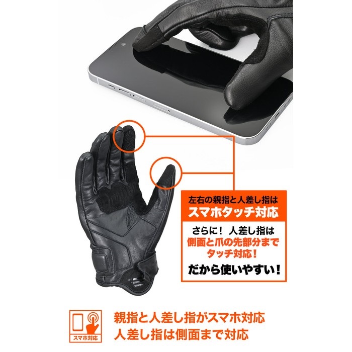 プロテクターの小型化・マグネットタブの配置など、ロングセラーグローブをより快適にリデザインしました。親指と人差し指がスマホ対応。