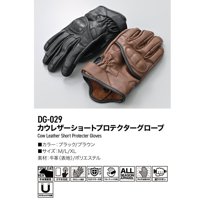 DG-029 カウレザーショートプロテクターグローブ ブラック