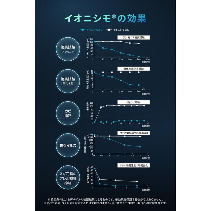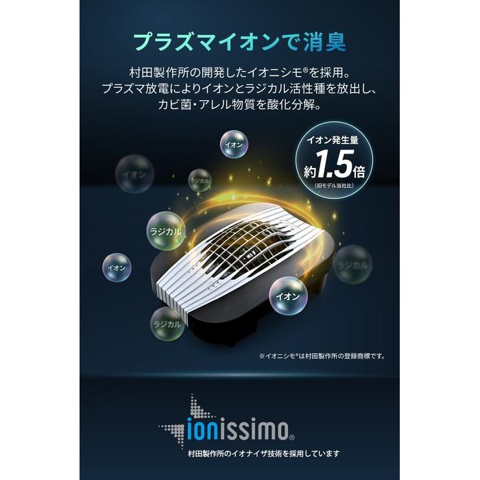 村田製作所の開発したイオニシモ??を採用。プラズマ放電によりイオンとラジカル活性種を放出し、カビ菌・アレル物質を酸化分解。