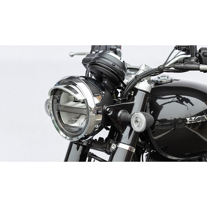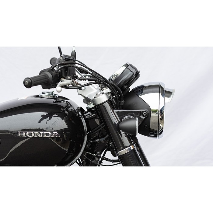 レトロな車体イメージで造られたGB350Cの見た目をさらにレトロに仕上げていくヘッドライトバイザー。