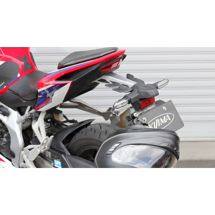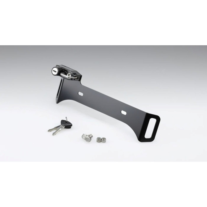 ナンバープレート固定用ボルトを利用して装着するヘルメットロックです。ナンバープレート周囲にスペースが必要となりますが汎用性の高いヘルメットロックとなっております。その他ツーリングネットやバンジーコード等の荷掛ポイントも左右に配備しております。