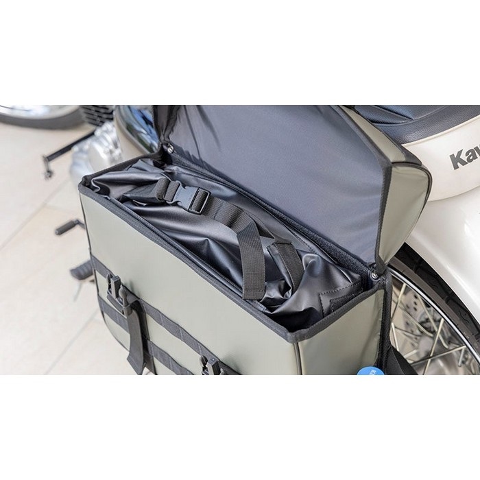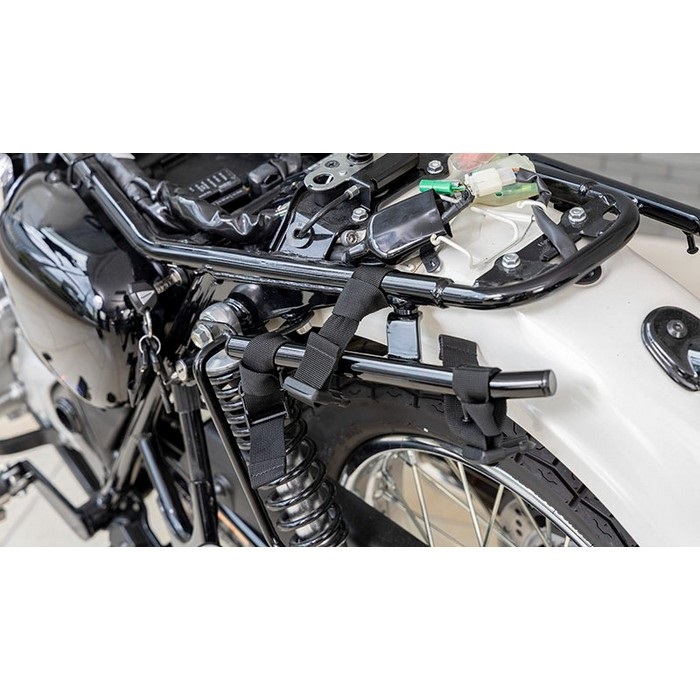 装着方法は従来の「TC」シリーズ同様にタンデムシートを利用したY型ベルト、フレーム部を利用したぶら下げ式の2通り。