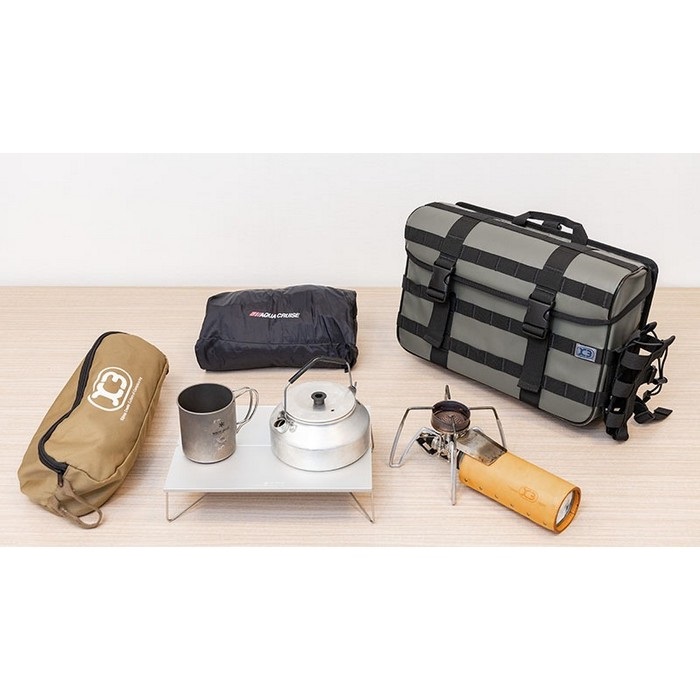 側面上部を覆う立体成型フラップ、側面に配したウェビングに小物を装着する事も出来る小型ながら大容量のタクティカルサイドバッグ。
