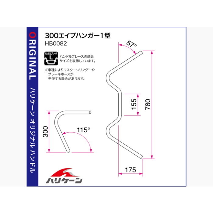 300エイプハンガー1型 ハンドルセット エイプ100 -16 ドラム車