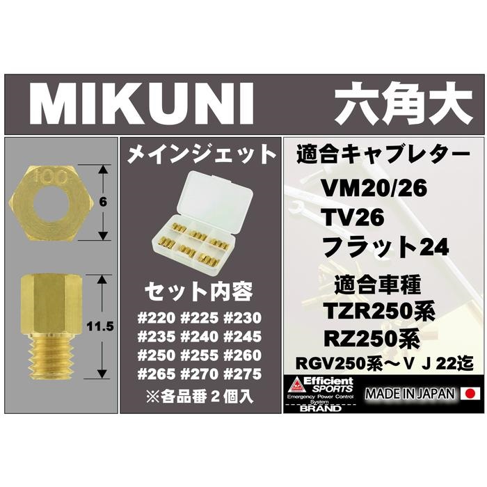 12オーバーサイズメインジェットセットミクニ 六角大 VM20/26/TV26/フラット24