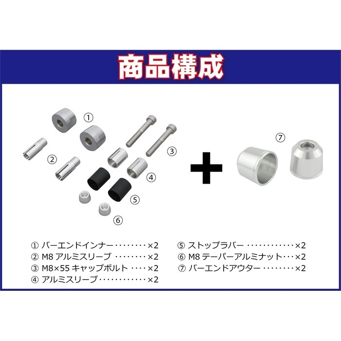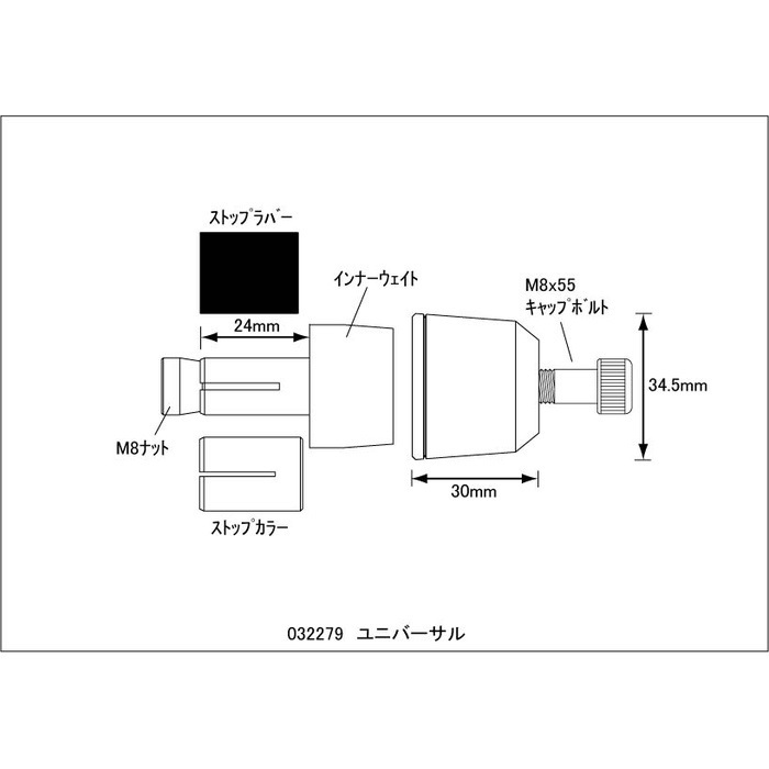 ヘビーウェイトナットM8ナット用031075-WN (135g/PC) と併用することでバーエンドの重量を更にアップ、不愉快な微振動を軽減します。