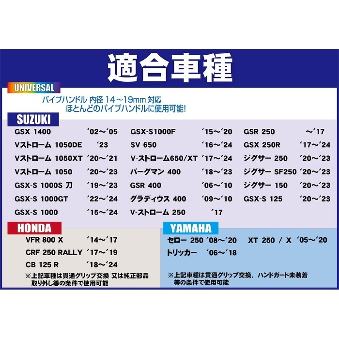 ※純正ハンドルなどに使用できないものがございます。ハンドル内径の確認が必要です。