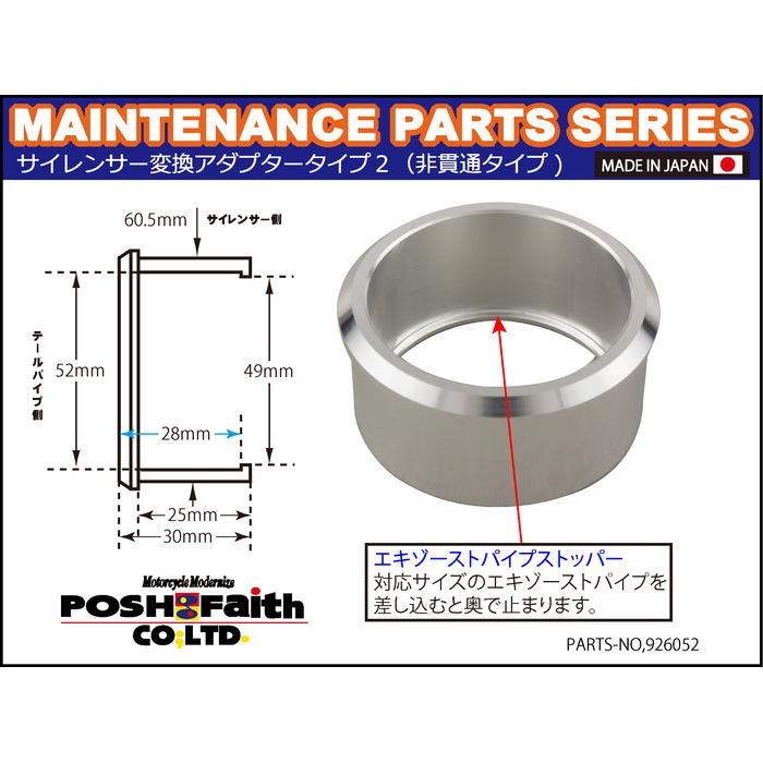 サイレンサー変換アダプタータイプ2 非貫通タイプ(60.5mm -> 52mm用)(シルバー)