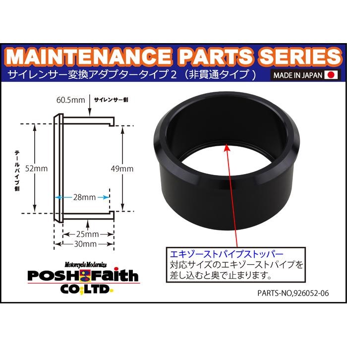サイレンサー変換アダプタータイプ2 非貫通タイプ(60.5mm -> 52mm用)(ブラック)