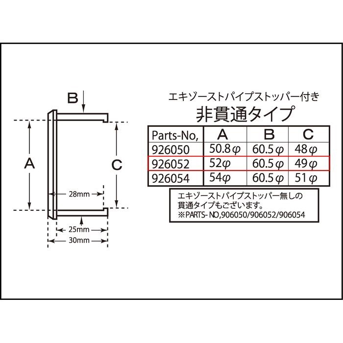 ・ストッパー無しの貫通タイプは品番:906052-06で設定あり