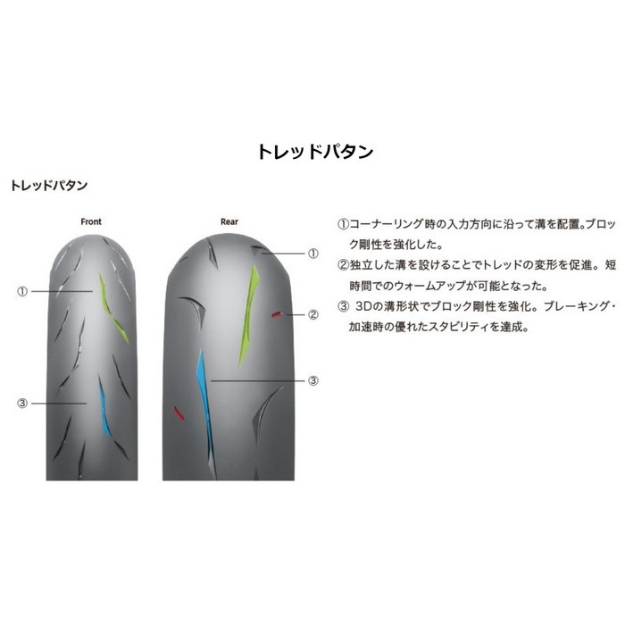 ドライコンディションでの高いハンドリング性能とグリップ性能、安定性を実現したプレミアムハイグリップラジアル。