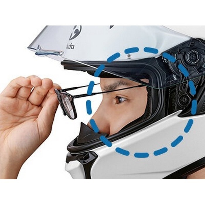 眼鏡やサングラスをスムーズにかけることができるチークパッド形状を採用。
