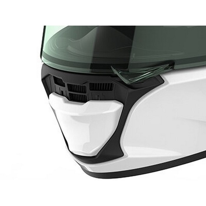 チンベンチレーションは上下2段階とし、開閉位置によるエアフロー切り替え構造を採用。全開状態では口元へのダイレクトなエアー導入とシールドの曇り除去エアーの導入、半開状態ではシールドの曇り除去エアーの導入のみを効果的に行うことができるよう設計。