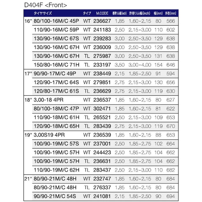 kabuki D404:カブキD404(フロント:110/90-19M/C 62H TL)