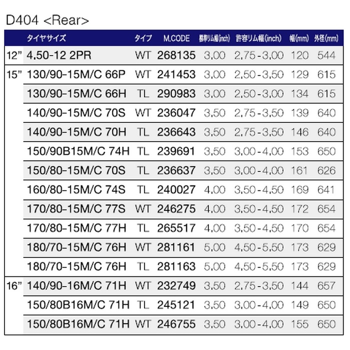 kabuki D404:カブキD404(リア:150/80-15M/C 70S TL)