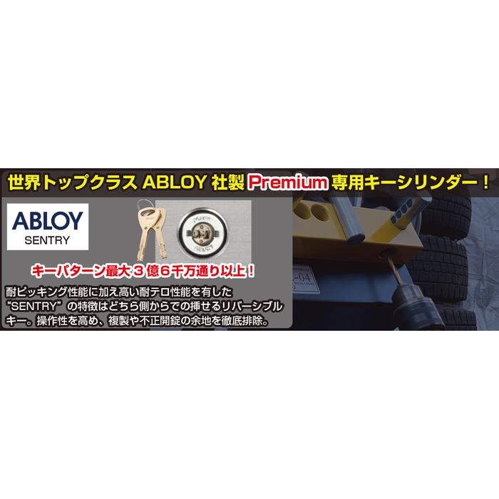 従来モデルSHL-02+をベースに、ロックシャフトには太さΦ25硬質ステンレス合金鋼を採用し、切断耐性をさらに強化。防犯性能・外観をワンランク上に進化させたプレミアム仕様のハンドルロック。世界的キーブランドABLOY SENTRYを採用。「SENTRYキー」は、両面差し込み可能なリバーシブル構造で、日々の操作性と高い防犯性を両立します。