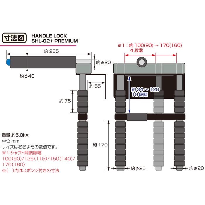 ハンドルスポーク幅(スポンジ含):4パターン(約90/110/135/155mm)