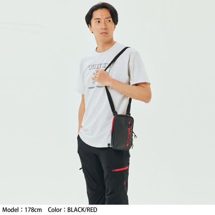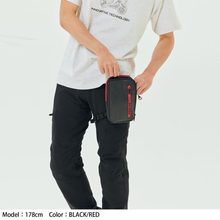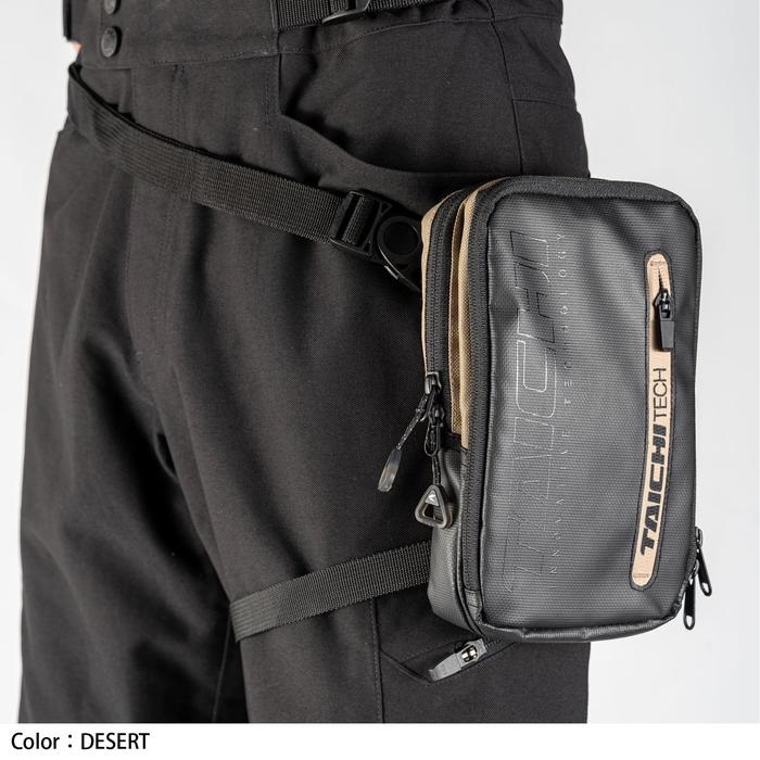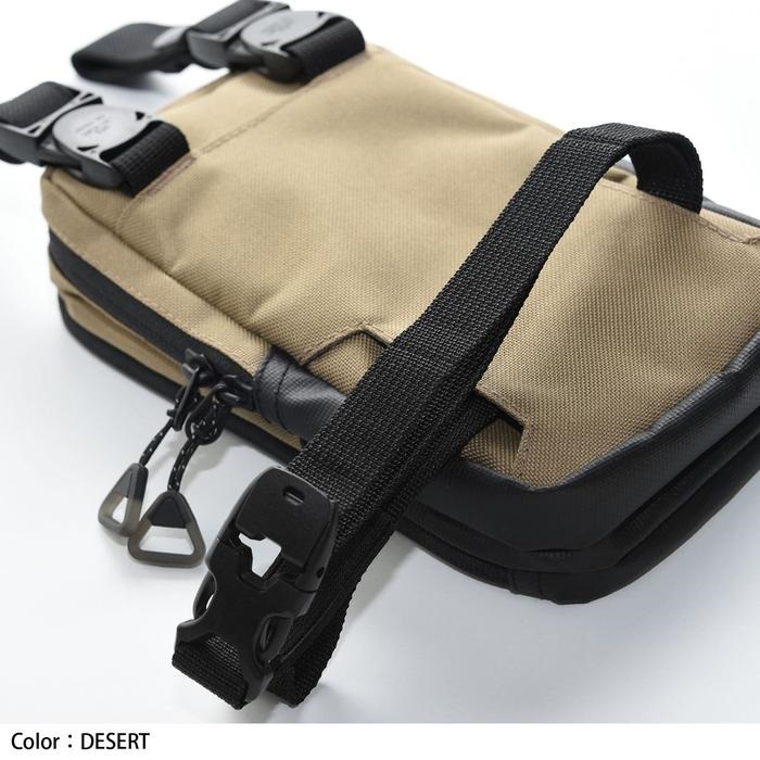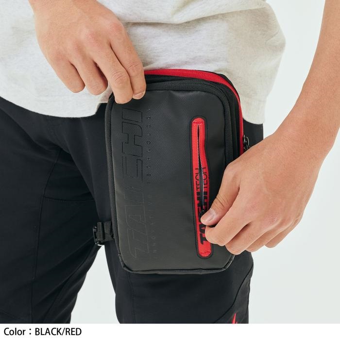付属ベルトにより、ショルダー・ウエスト・レッグポーチとして使用可能な、3way仕様の多機能ポーチ。