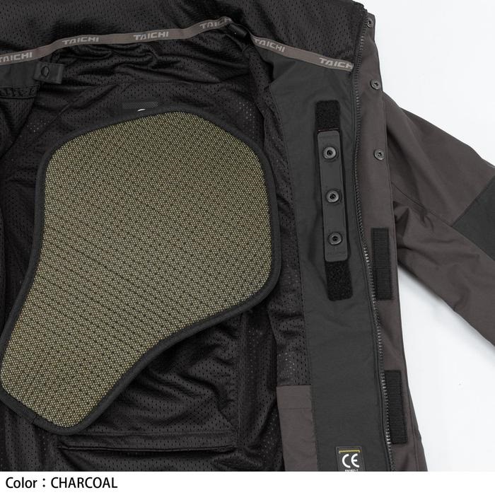標準装備の肩・肘・背中の各プロテクターはCEレベル2プロテクター(別売)でアップグレード可能。