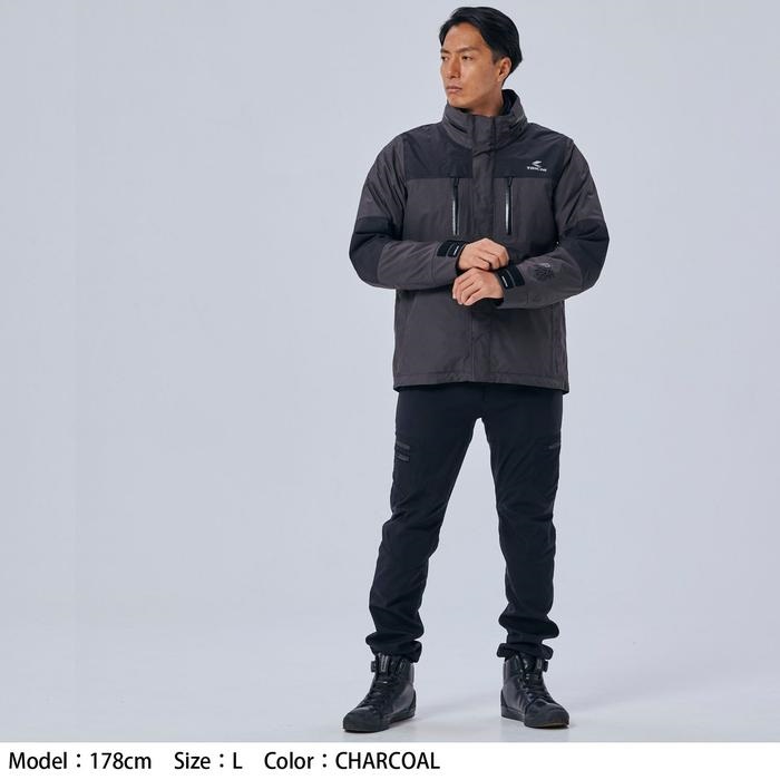 プロテクター内蔵のアウターと保温力をもつインナージャケットの二重構造で、気温やシーンに合わせてそれぞれ単体や組み合わせた着用が可能です。