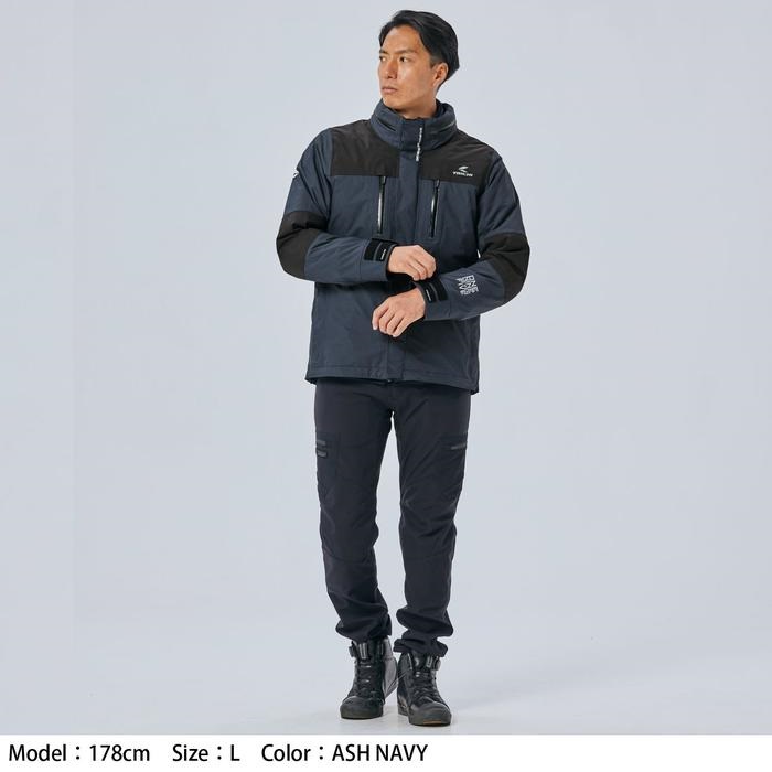プロテクター内蔵のアウターと保温力をもつインナージャケットの二重構造で、気温やシーンに合わせてそれぞれ単体や組み合わせた着用が可能です。