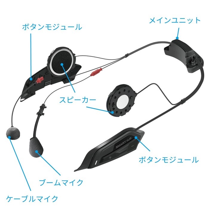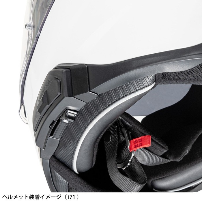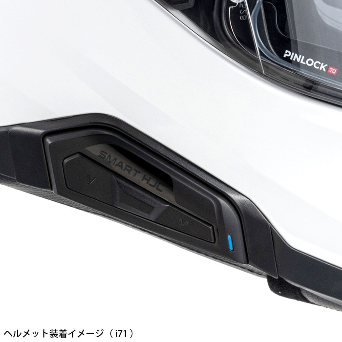HJCヘルメット専用設計のビルトインモデルで、装着時もスマートな外観と実用性の高さを兼ね備えたインカム。
