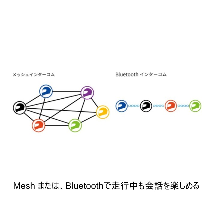 Mesh または、Bluetoothで走行中も会話を楽しめる