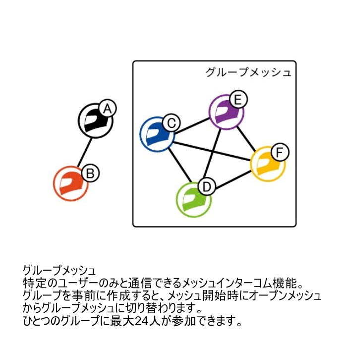 Bluetoothインターコム:Mesh非対応インカムとの会話に参加できます。最大4人での通信が可能。