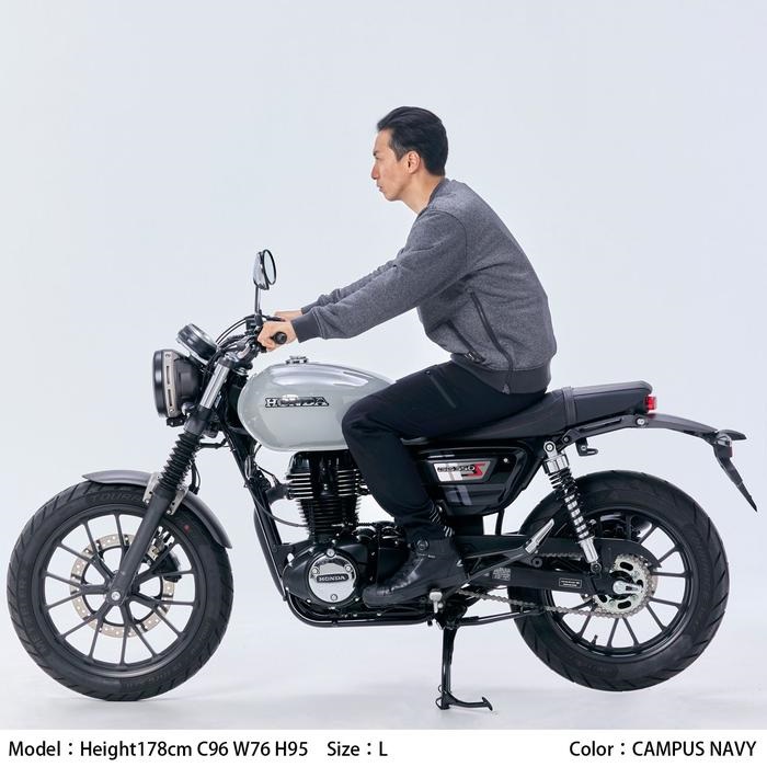 街中でも普段着感覚で着られるスウェットスタイルのライディングウエア。