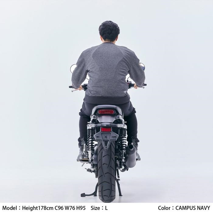 プロテクターを内蔵していながら一見アウターには見えないシルエットで、降車後そのまま買い物や食事をしても違和感のないデザインに仕上げています。