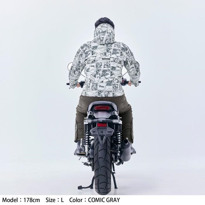 保温性と着心地に優れたソフトシェル生地を採用。フードは着脱式で、シーンやスタイルにあわせた着こなしが可能です。 カジュアルなデザインながら、肩・肘にはCE レベル2のプロテクターを装備し、高い安全性を確保しています。