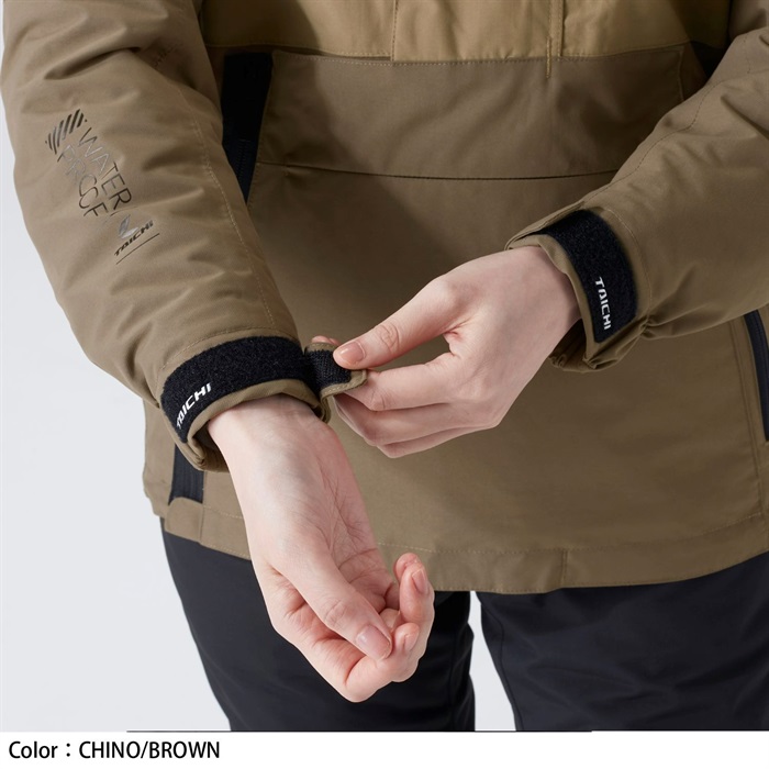 防水性やCEプロテクターなどのライディングに必要な機能を兼ね備えた、アノラックスタイルのウインターパーカ。 急な雨に見舞われた際にも安心してご使用いただけます。