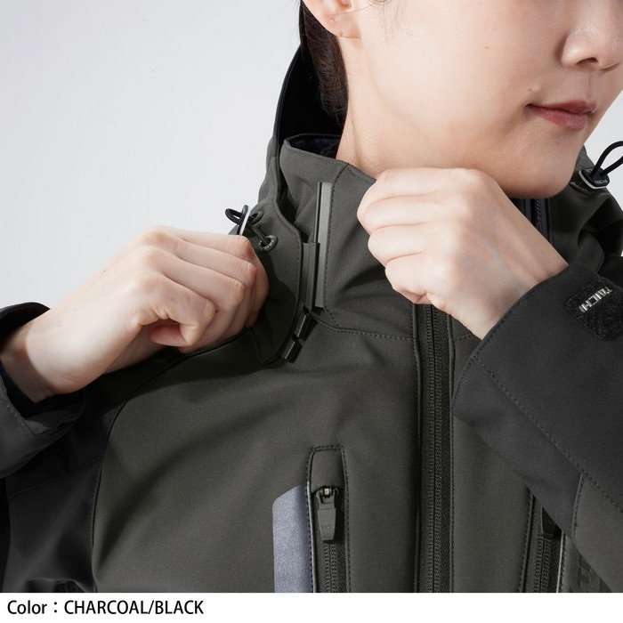 保温性と着心地に優れたソフトシェル生地を採用。フードは着脱式で、シーンやスタイルにあわせた着こなしが可能です。 カジュアルなデザインながら、肩・肘にはCE レベル2のプロテクターを装備し、高い安全性を確保しています。