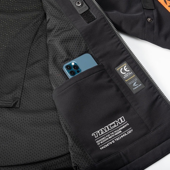肩と肘にCE規格LV.1のプロテクターを内蔵。優れた通気性と強度を両立。
