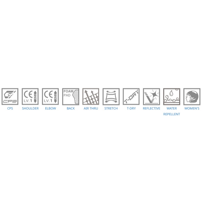 標準装備の肩・肘・背中の各プロテクターは別売品のCE LV.2プロテクターにてアップグレードが可能。(CPS対応) >>プロテクター一覧