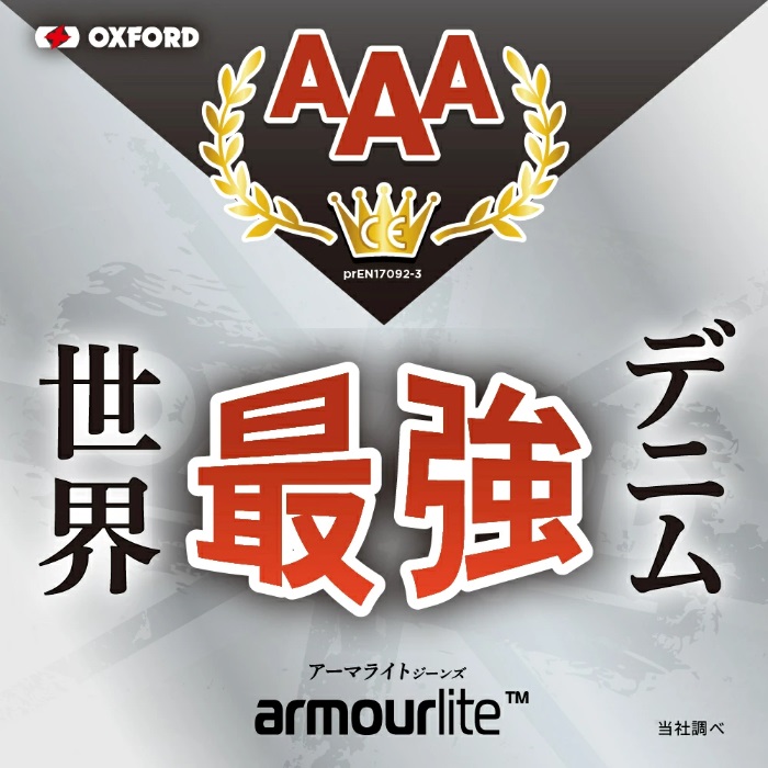 「AAA アーマライト ジーンズ」 が保有する CE*AAA*は、Moto GP ライダーが使用するレーシングスーツと同等の規格です。