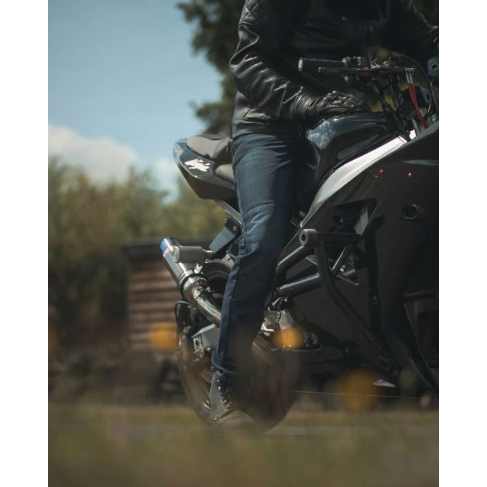 「AAA アーマライト ジーンズ」 商品開発に際して、ゴールとしたのは、革製品のようにタフな耐摩耗性と安全性、そして、タウンカジュアルを乗車シーンにも取り入れるライダー向けファッション性。