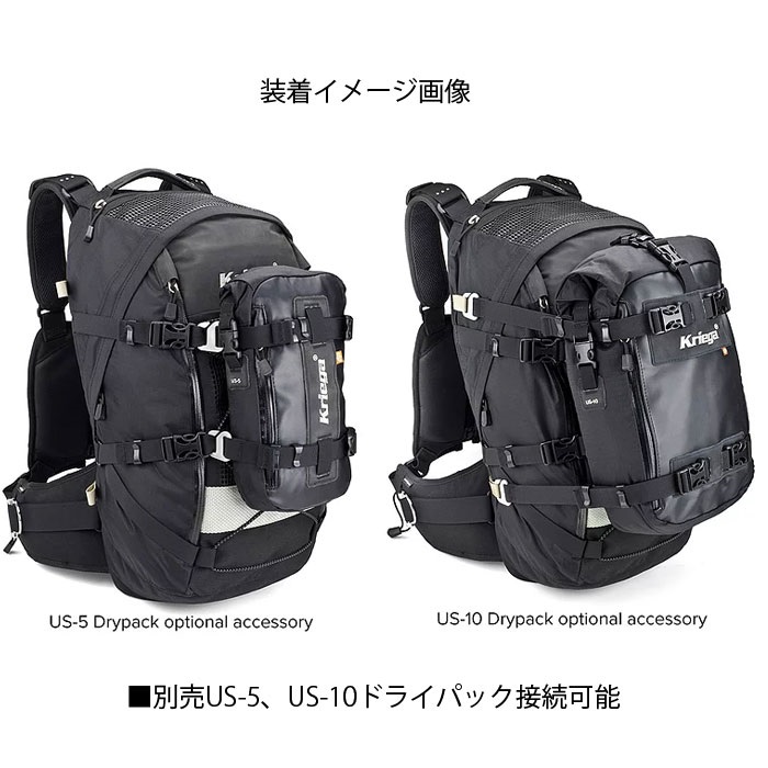 ハーネス両脇のストラップ調整には、Kriega独自のアロイテンショナーを採用、余分なストラップのバタつきを無くします。