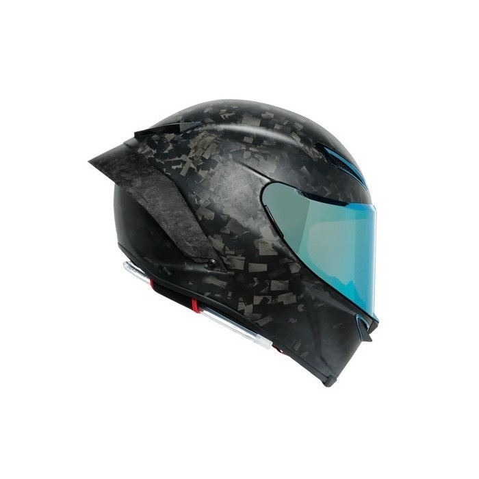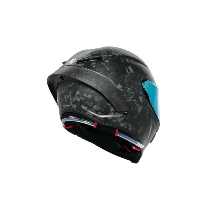 PISTA GP RR FUTURO は従来のカーボンヘルメットが織物状のカーボンシートを使うのに対して、細かく切断されたカーボン繊維の層を重ねた構造(フォージドカーボン)を採用し、ヘルメットの総重量を同じにしながら、衝撃時のエネルギー吸収をより大きくすることを可能にしています。