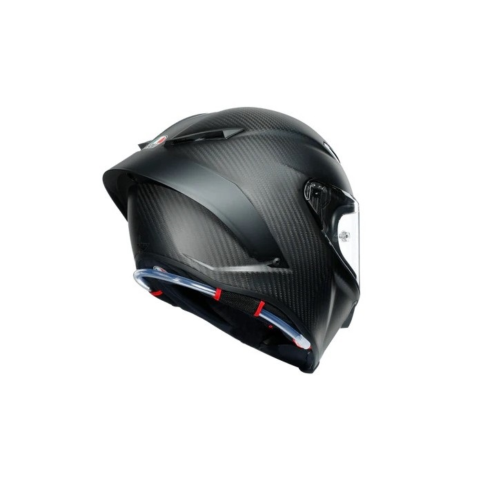 PISTA GP RRはフルカーボンファイバー製の軽量かつ強固なシェル構造はそのままに、レースシーンで開発された最新のエアロダイナミクスに基づいた新形状のリアスポイラー。より多くのエアーを効率的に取り込む新形状のエアベンチレーションシステム。強固なシステムを採用したシールドは新開発のMax Pinlock 120を採用しあらゆるシチュエーションで快適な視界を提供します。また、MotoGP譲りのハイドレーションシステムを搭載。ECE2206認証、SG認証取得、FIM公認取得、MFJ公認取得、アジアンフィット。