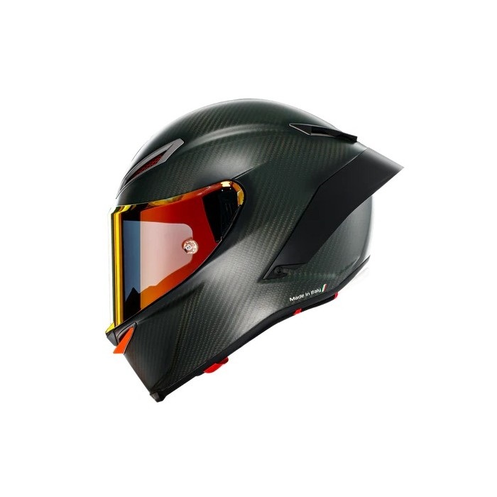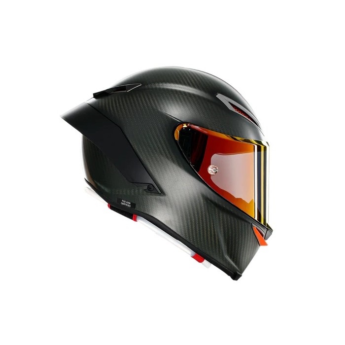 PISTA GP RRはフルカーボンファイバー製の軽量かつ強固なシェル構造はそのままに、レースシーンで開発された最新のエアロダイナミクスに基づいた新形状のリアスポイラー。より多くのエアーを効率的に取り込む新形状のエアベンチレーションシステム。強固なシステムを採用したシールドは新開発のMax Pinlock 120を採用しあらゆるシチュエーションで快適な視界を提供します。また、MotoGP譲りのハイドレーションシステムを搭載。ECE2206認証、SG認証取得、FIM公認取得、MFJ公認取得、アジアンフィット。