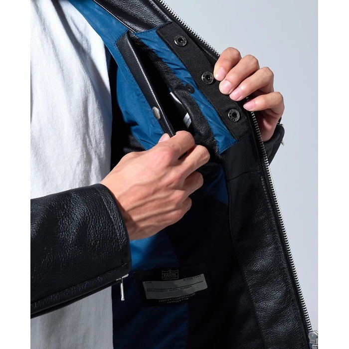 70~80年代を彷彿とさせる当て革ディテールと、現代的な機能性を兼ね備えたシングルライダース。