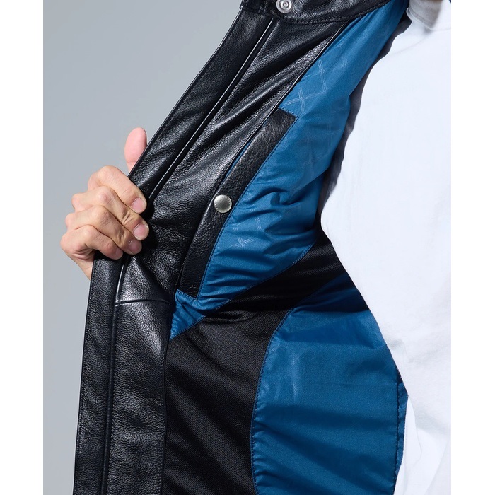 ベンチレーション機能やパッドポケットを備え、実用性も高く、裏地には限定カラーの深青を採用。