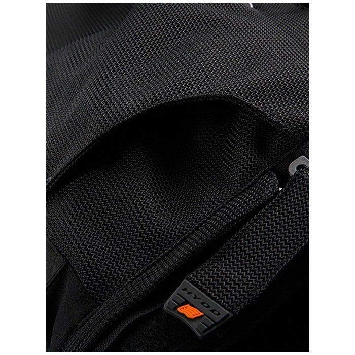 また、バイクを降りた時のシルエットも考慮してスタイリッシュな仕上がりになっています。腰にソフトタイプのフォームプロテクター、膝にはHYODオリジナルのD3Oプロテクターを標準装備(着脱可能)。ジャケットのジョイントファスナーと連結することにより、フィット感と安心感、一体感のあるストリートスーツとして着用することができます。。