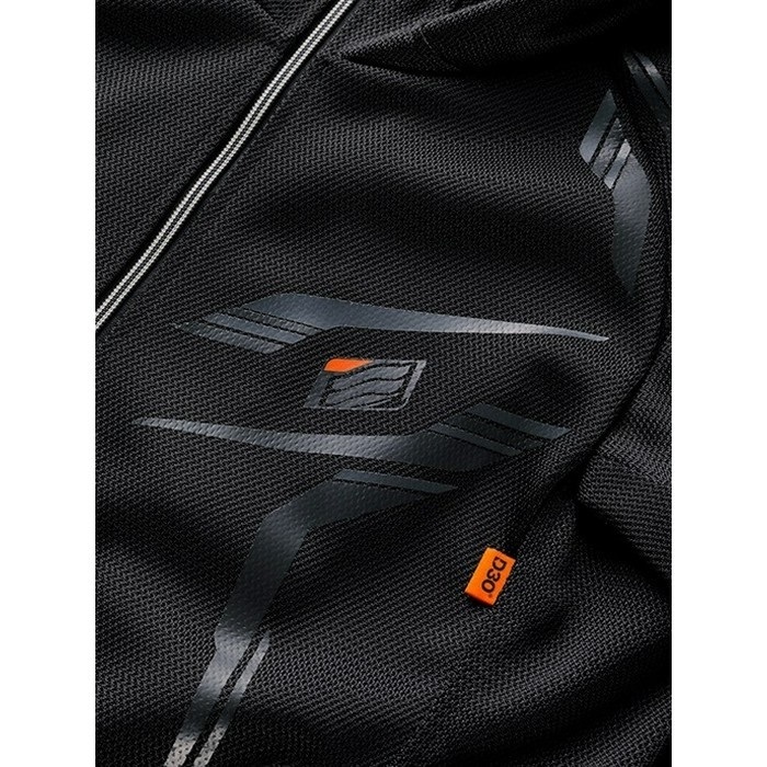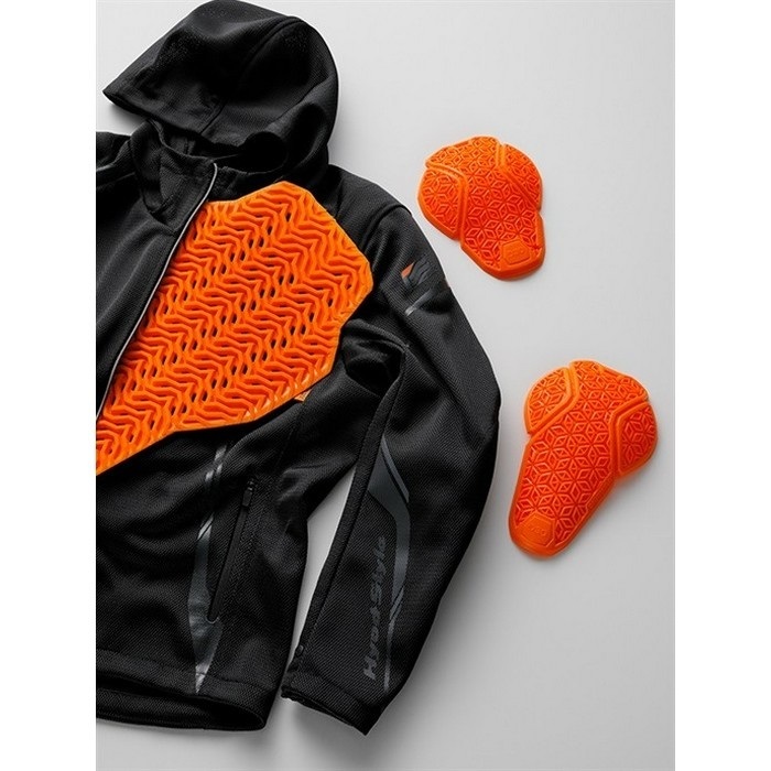 肩と肘には薄く柔らかなエアースルー構造の D3O Diabloプロテクターを、背中にはD3O VIPER AIRを装備してハイスペックな安全性能とストレスフリーな着心地を実現しています(どちらもCE規格・LEVEL1認証)。