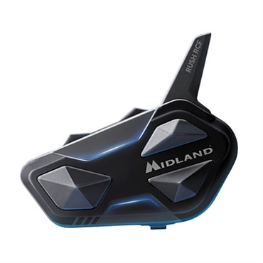ミッドランド RUSH RCFは、ミッドランドのバイク用インカムの中でも最上位モデルで、メッシュ通信技術とRCF社による高品質な音響技術を融合したフラッグシップ製品です。グループツーリングでの長距離通信や高音質を求めるライダーに最適です。