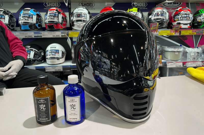 “究-KIWAMI-”は、ヘルメット専用に開発された高濃度ガラスコーティング。