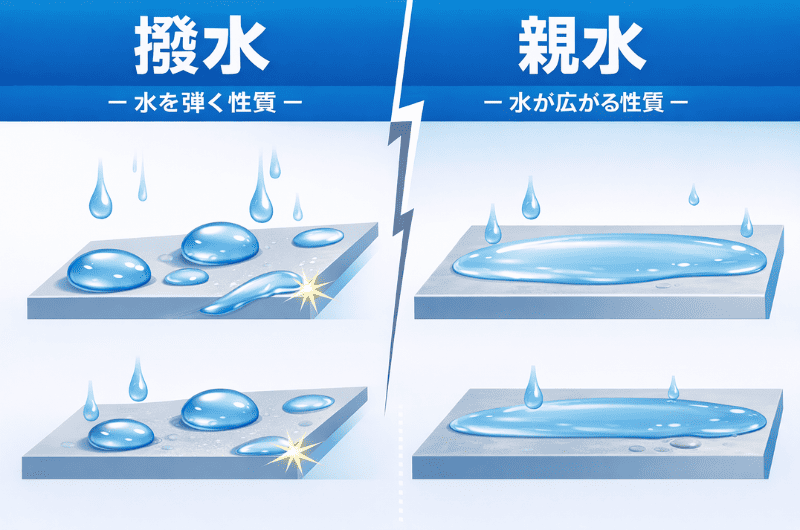 まず注目したいのが、「撥水タイプか、親水タイプか」というコーティング特性の違いです。