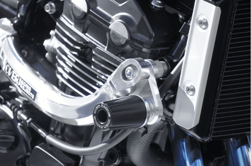 転倒時のダメージ軽減を目的としたエンジンスライダーも、OVER Racingらしい設計思想が反映されています。車体への取り付け剛性や衝撃の逃がし方が考慮されており、保護性能と車体バランスの両立が図られています。過度に主張しすぎないデザインのため、カスタム感を抑えつつ安心感を高めたいライダーに適しています。